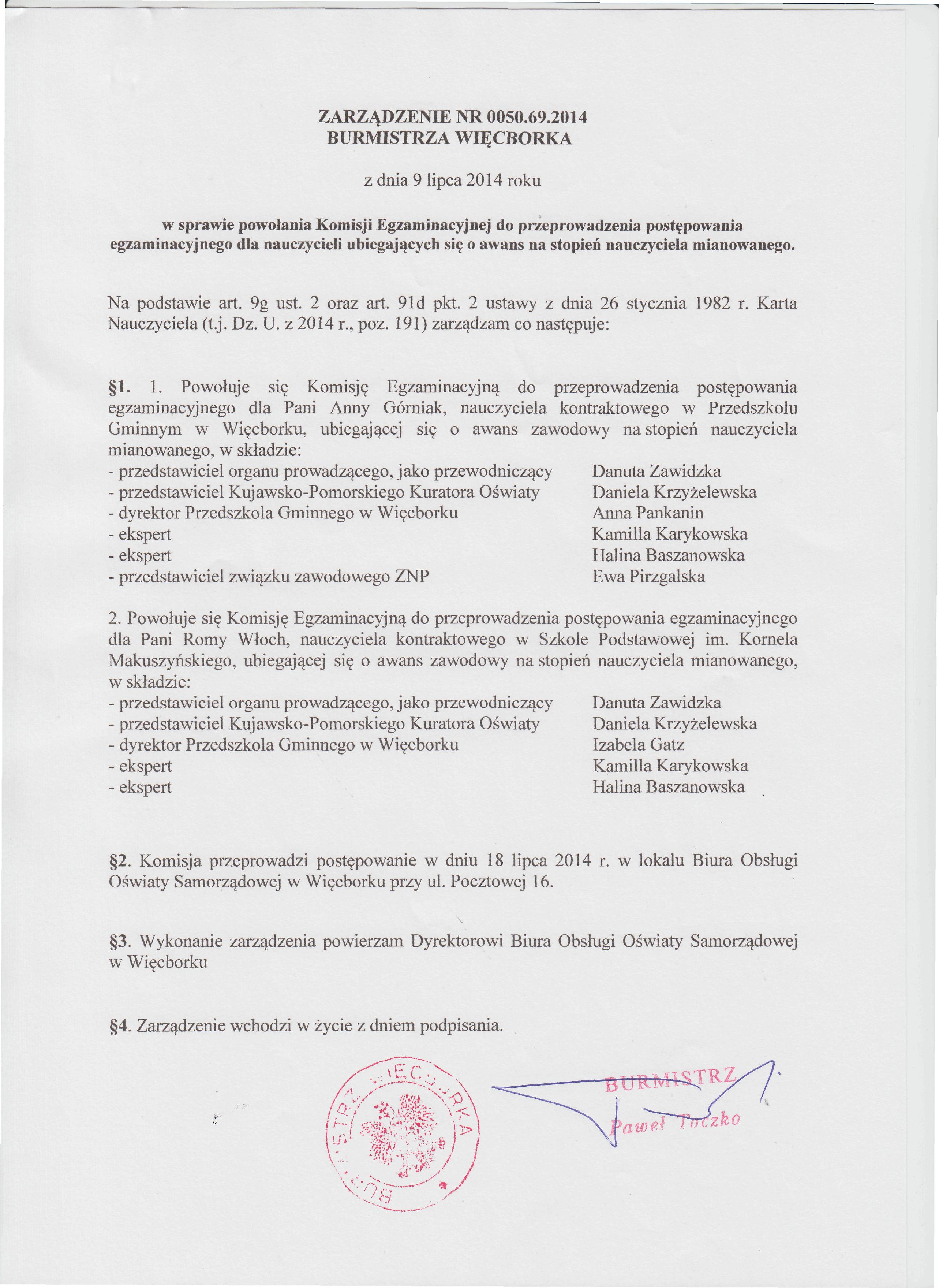 - Czego dotyczy dodawany akt prawny Powołanie Komisji Egzaminacyjnej do przeprowadzenia postępowania egzaminacyjnego dla nauczycieli ubiegających sie o awans na stopień nauczyciela mianowanego
