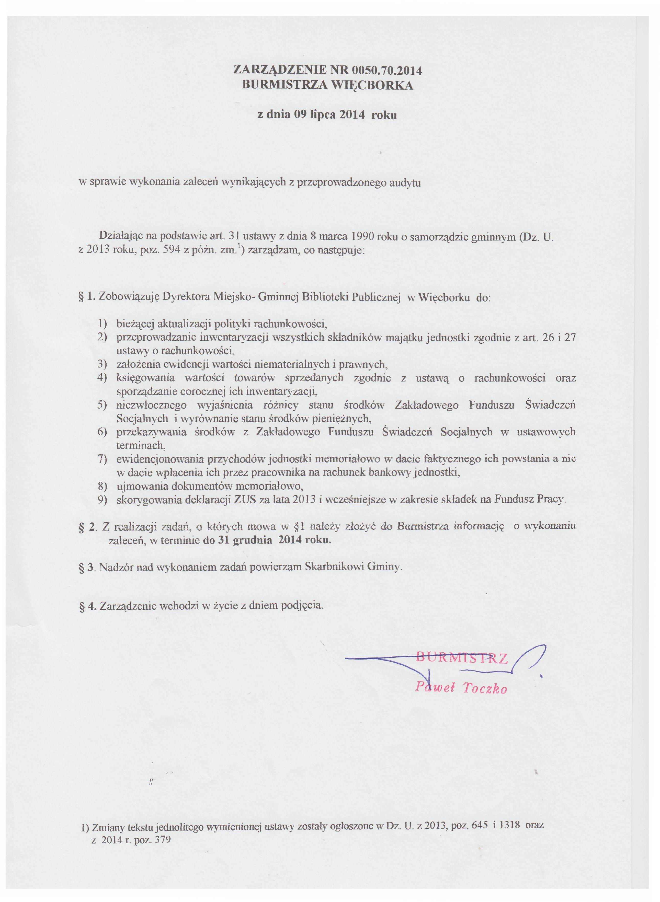 - Rodzaj aktu prawnego Zarządzenie Burmistrza