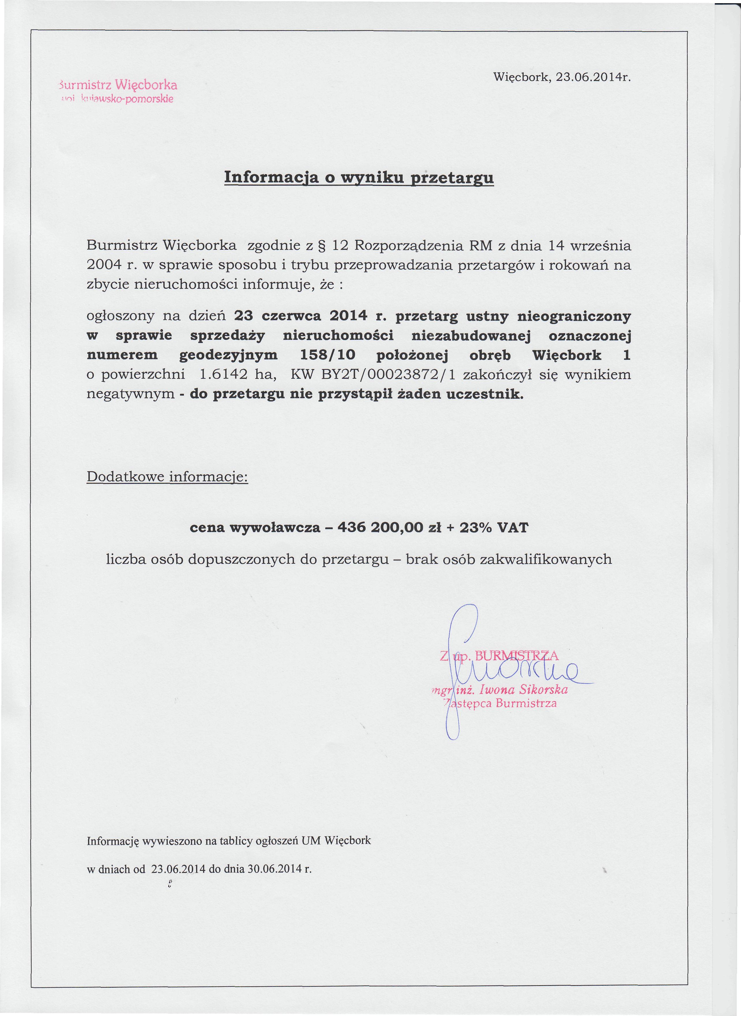 | utworzono: | data: 10:25, 14.12.2015 | przez: Ewa Kiestrzyn-Kobus | Ogłoszenie o przetargu na sprzedaż nieruchomości - dz. 158/10 obręb Więcbork 1 |